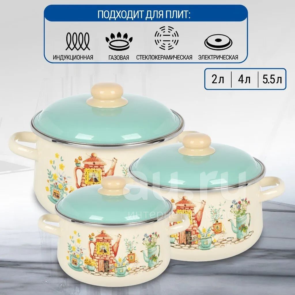599руб.Набор посуды эмалированная сталь, 3 предмета, 2, 4, 5.5 л, индукция, ...