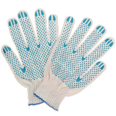 159руб.Перчатки х/б, ПВХ покрытие, волна, 7.5 класс вязки, 3 нити, белая осн...