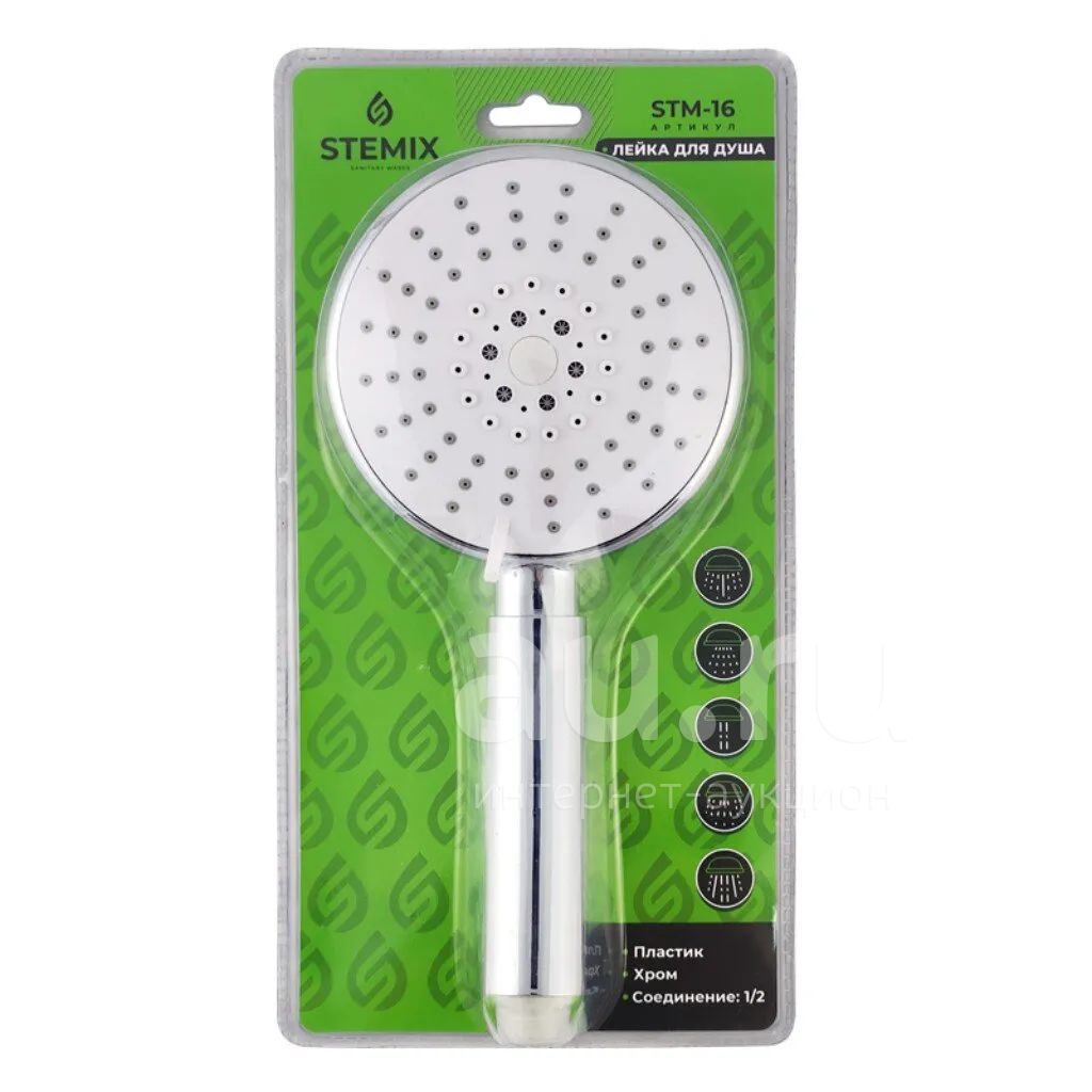 Лейка для душа, пластик, наружная резьба, 1/2 '', 5 режимов, хром, Stemix, STM-16