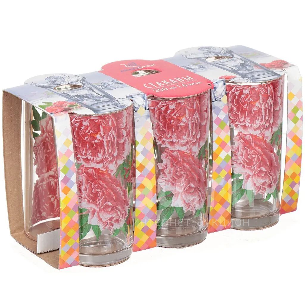 Стакан 230 мл, стекло, 6 шт, Декостек, Пионы, 146 -Д