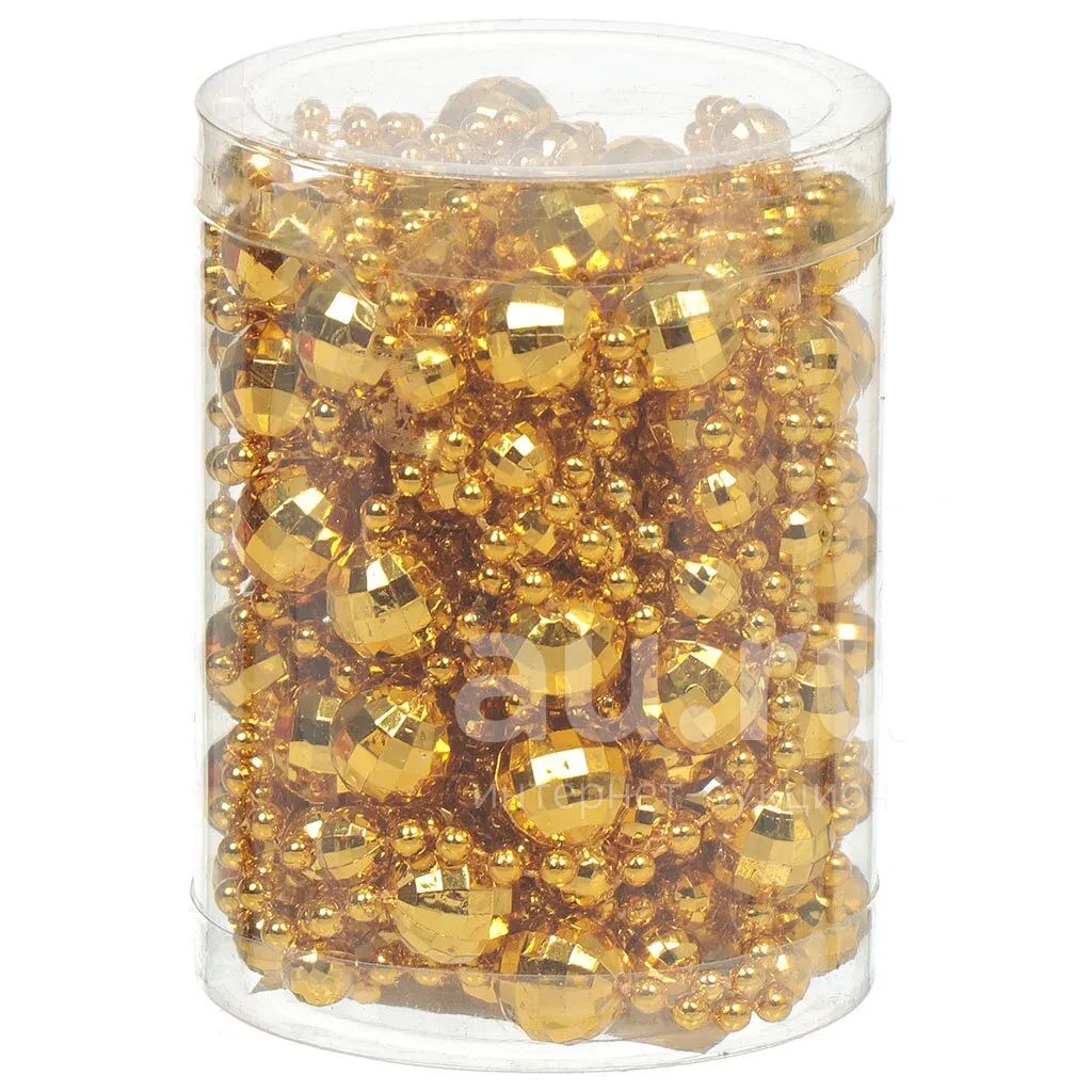 Бусы новогодние пластик, 1.4х500 см, круглые, золотые, SY18ZL-86 G