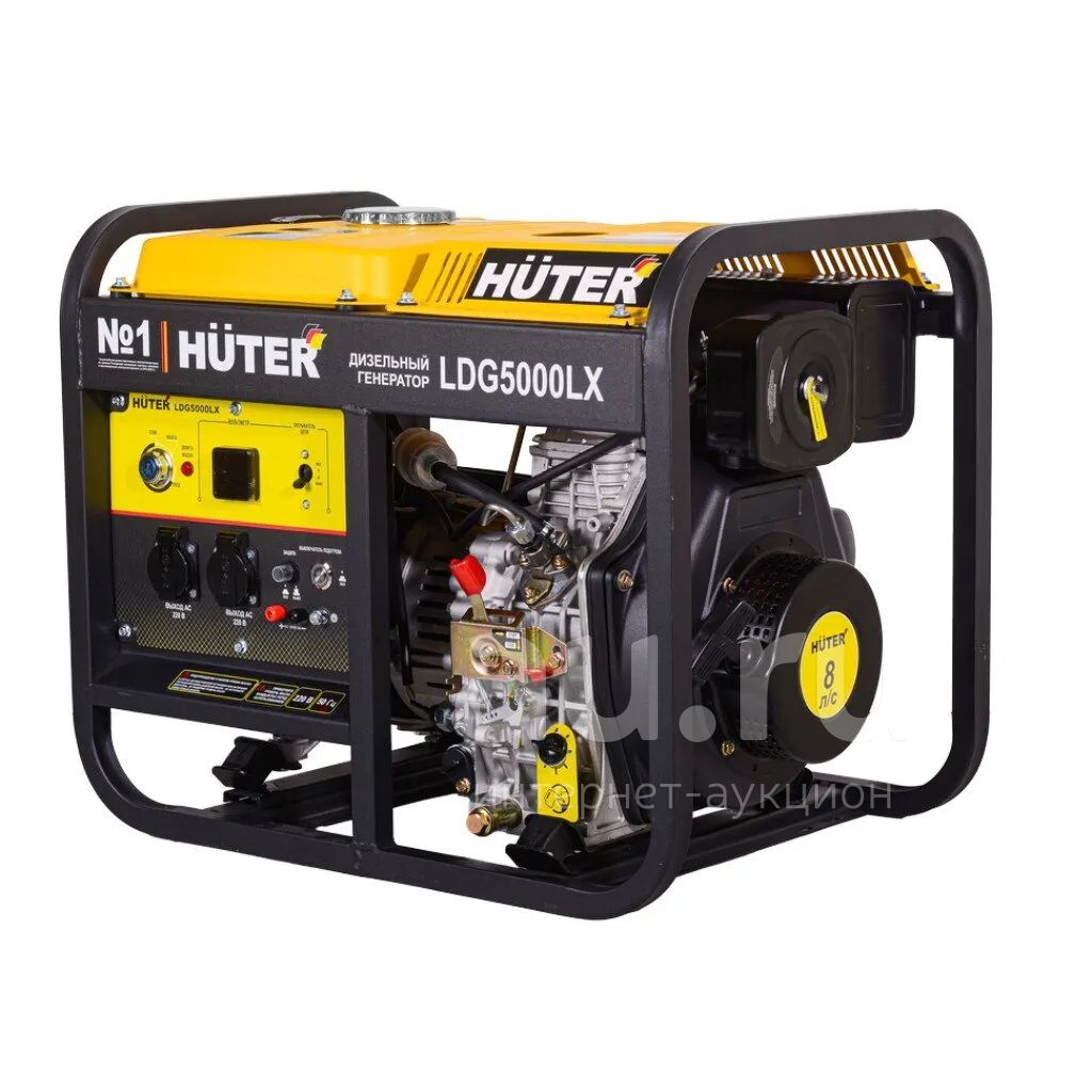 Генератор дизельный, Huter, LDG 5000LX, 3 кВт, 220-230 В, четырехтактный, 8 л.с., 64/2/7