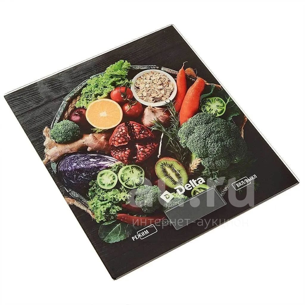 Весы кухонные электронные, стекло, Delta, KCE-71 Здоровое питание, платформа, точность 1 г, до 5 кг, LCD-дисплей, разноцветные, KCE-71
