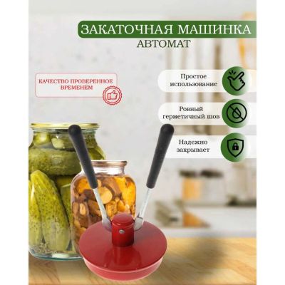 Полуавтоматическая закаточная машинка предназначена для герметичной укупорки стеклянных банок металлическими крышками при домашнем консервировании. Регулируемый закаточный ролик позволяет применять для укупорки крышки различных производителей.