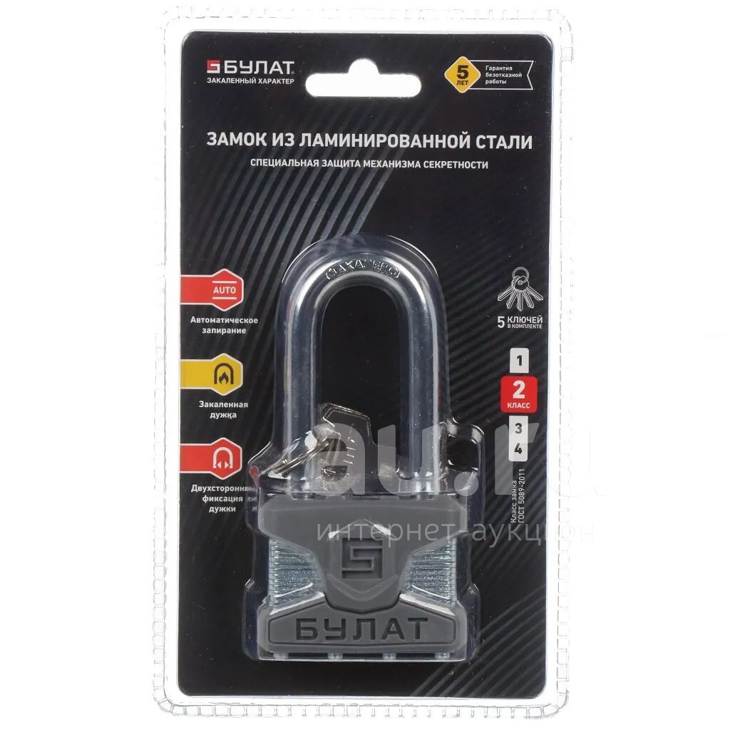 Замок навесной Булат, ВС 0150-01 ПЛ, 16 520, блистер, цилиндровый, 56 мм, 5 ключей