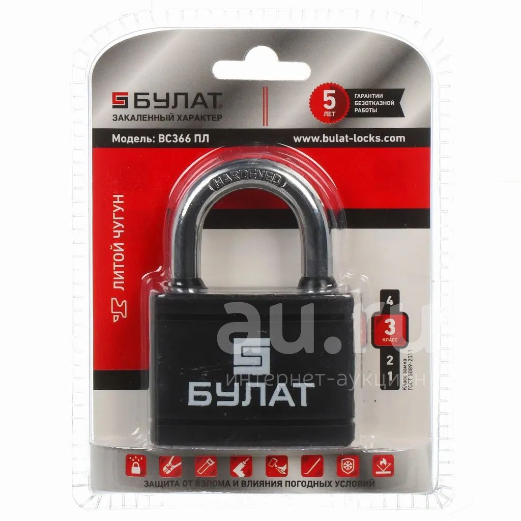 Замок навесной Булат, ВС 366 ПЛ, 14 512, блистер, цилиндровый, черный, 57 мм, 5 ключей
