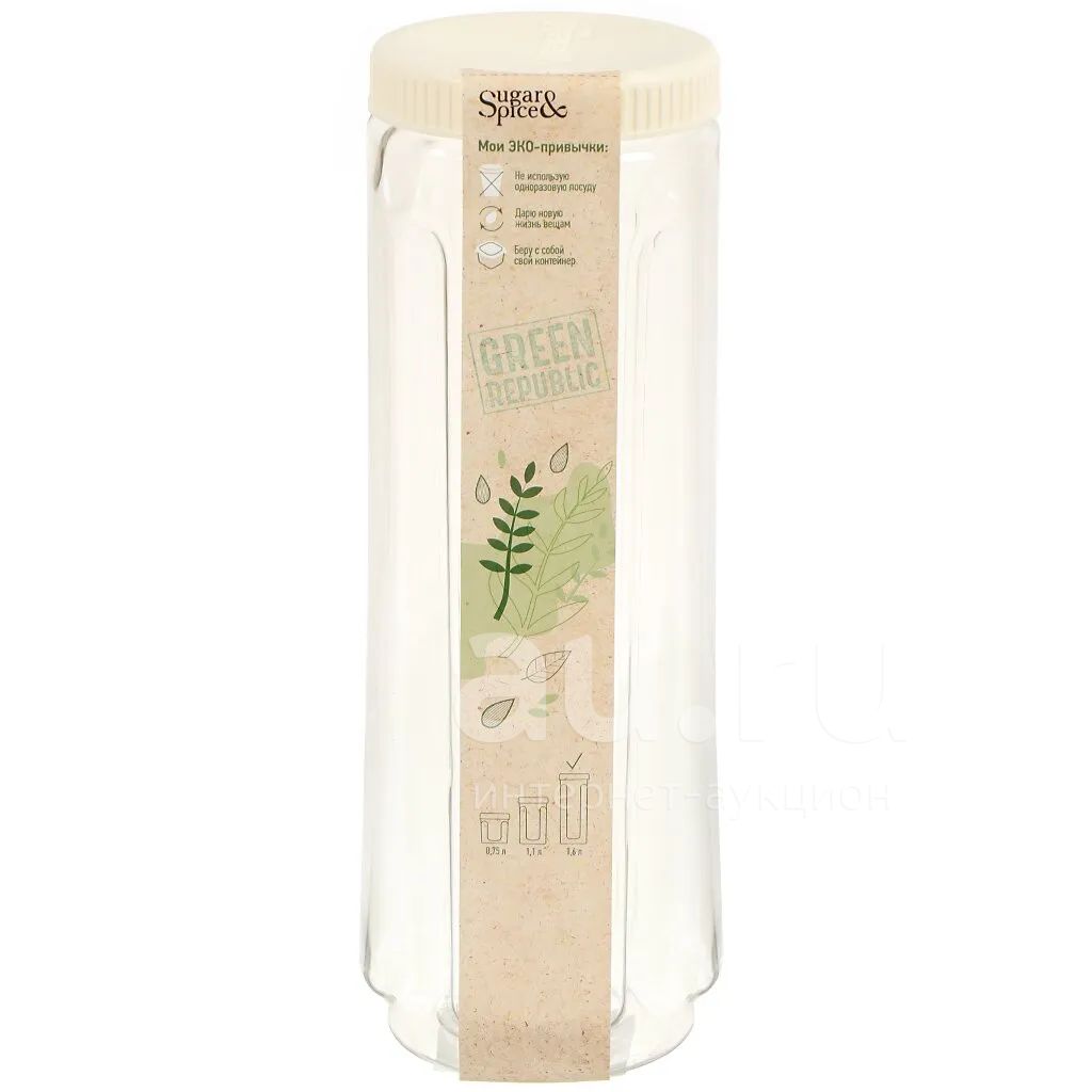 Банка для сыпучих продуктов Sugar&Spice Green Republic, 1,6л, предназначен для хранения муки, круп, соли, сахара, макаронных изделий, орехов, фасоли, кофе.Прозрачный корпус банки позволяет легко определить содержимое и позволяет легко определить содержимое банки и вовремя пополнить запасы. Корпус банок не деформируется благодаря ребрам на корпусе банок.Объем: 1,6 л.