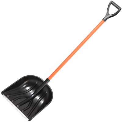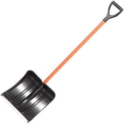 Движок для уборки снега с пластиковой лопатой, алюминиевой планкой и колесами: быстро справляется с сугробами без лишних усилий — оптимальный выбор для дачи и двора.