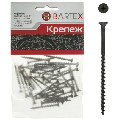 Саморезы Bartex предназначены для крепления гипсокартонных плит к деревянным основаниям. Стержень с редкой и крупной резьбой позволяет саморезу легко входить в древесину. Благодаря потайной головке изделие не выступает над поверхностью. Крестообразный шлиц дает возможность проводить работу отверткой или шуруповертом. Монтаж может производиться с предварительным высверливанием отверстий под саморез или без него.