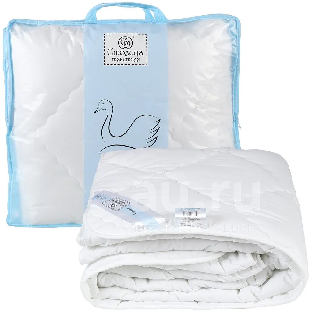 Одеяло 1.5-спальное, 140х205 см, Премиум, Лебяжий искусственный пух, 300 г/м2, всесезонное, чехол хлопок, кант, Столица Текстиля