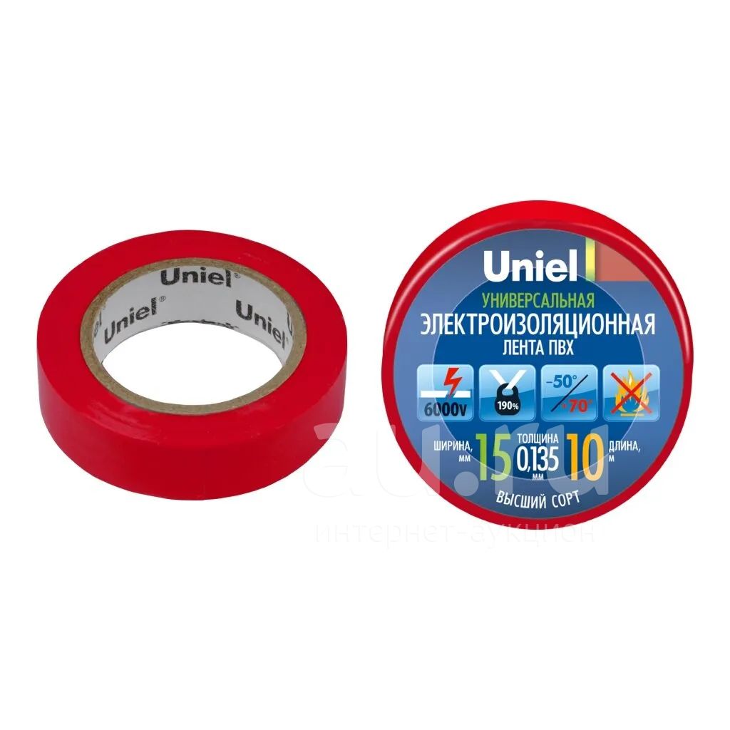 Изолента ПВХ, 15 мм, красная, 10 м, Uniel, 04513