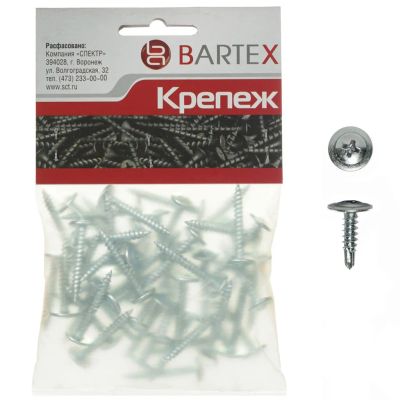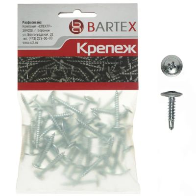 Универсальные саморезы Bartex – это незаменимые крепежные детали для проведения ремонтно-строительных работ. С их помощью Вы сможете соединить различные виды материалов: металл, древесину, пластмассу или гипсокартон. Крестообразный шлиц на головке позволяет проводить работу отверткой или шуруповертом.