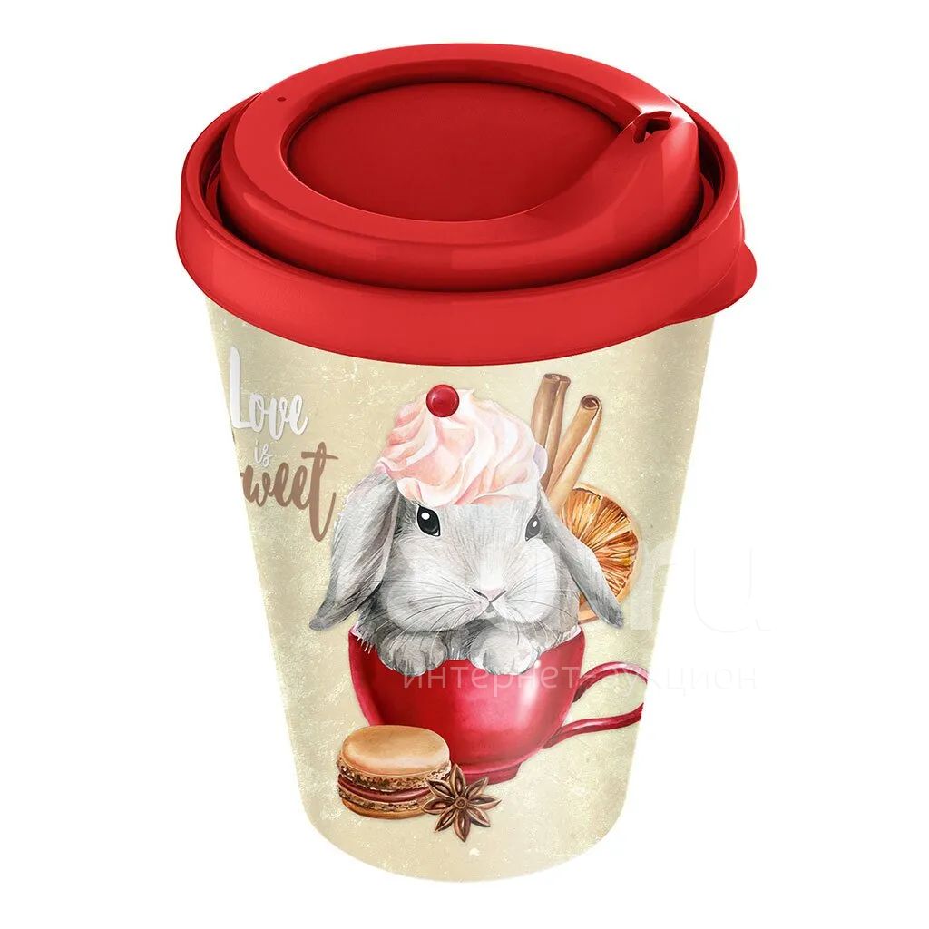 Стакан 420 мл, пластик, с крышкой, с декором, 44206/03