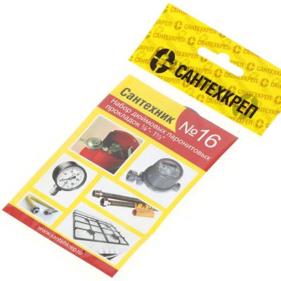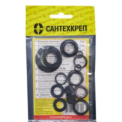 Набор прокладок сантехнических 13 шт, 1/4"-1" 1/2, фторопласт, белый, СантехКреп, Сантехник №17, 2.7.17.