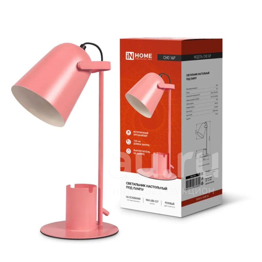 Светильник настольный с органайзером, E27, 40 Вт, розовый, абажур розовый, In Home, СНО 16Р, 4690612035895