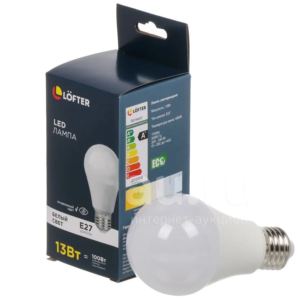Лампа светодиодная E27, 13 Вт, 100 Вт, 220 В, груша, 4000 К, нейтральный белый свет, Lofter