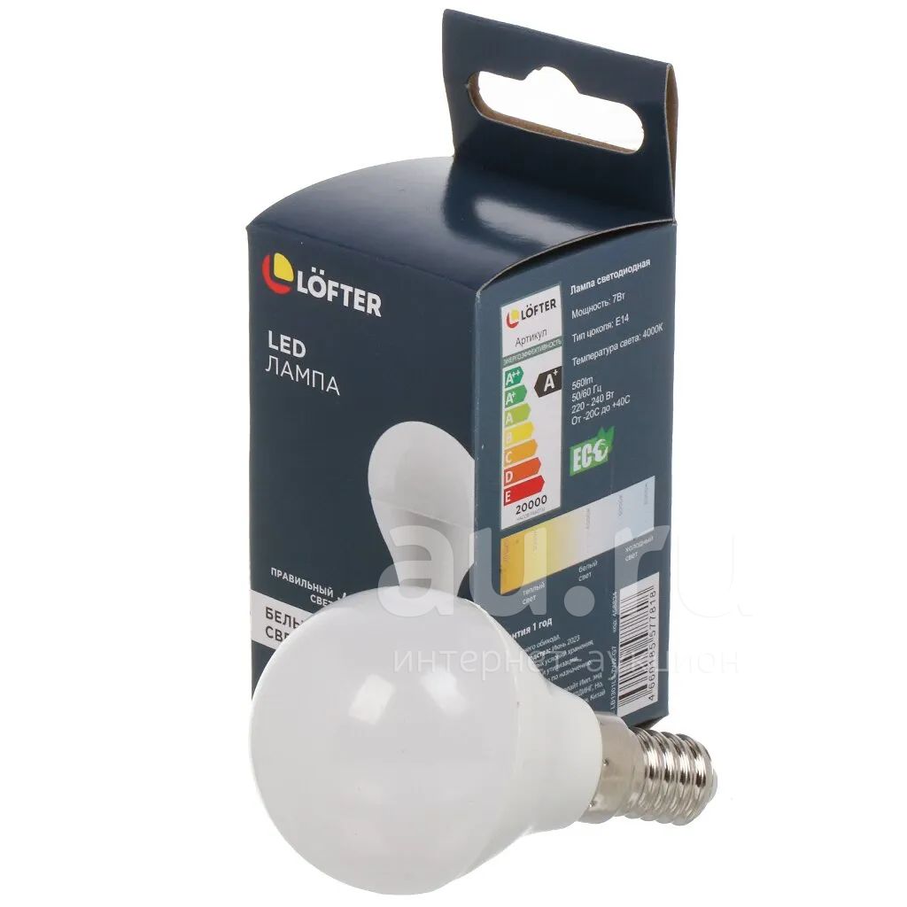 Лампа светодиодная E14, 7 Вт, 60 Вт, 220 В, шар, 4000 К, нейтральный белый свет, Lofter