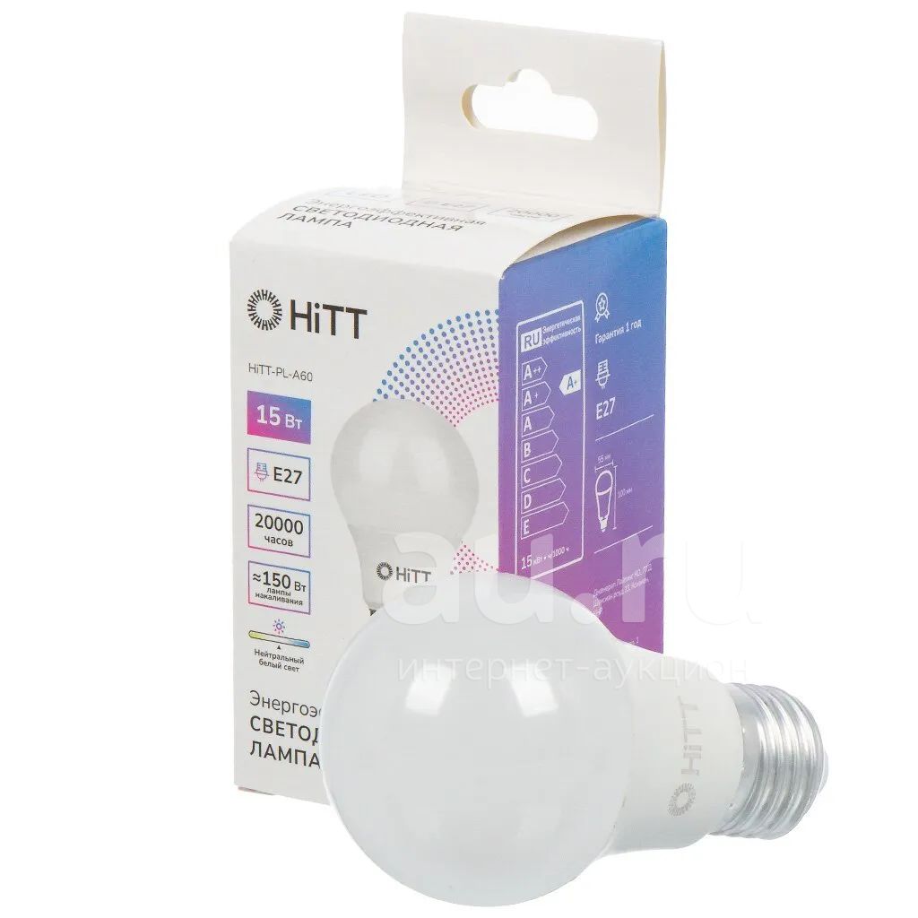 Лампа светодиодная E27, 15 Вт, 150 Вт, 230 В, груша, 4000 К, нейтральный белый свет, HiTT, HiTT-PL-A60, A60, 1010005