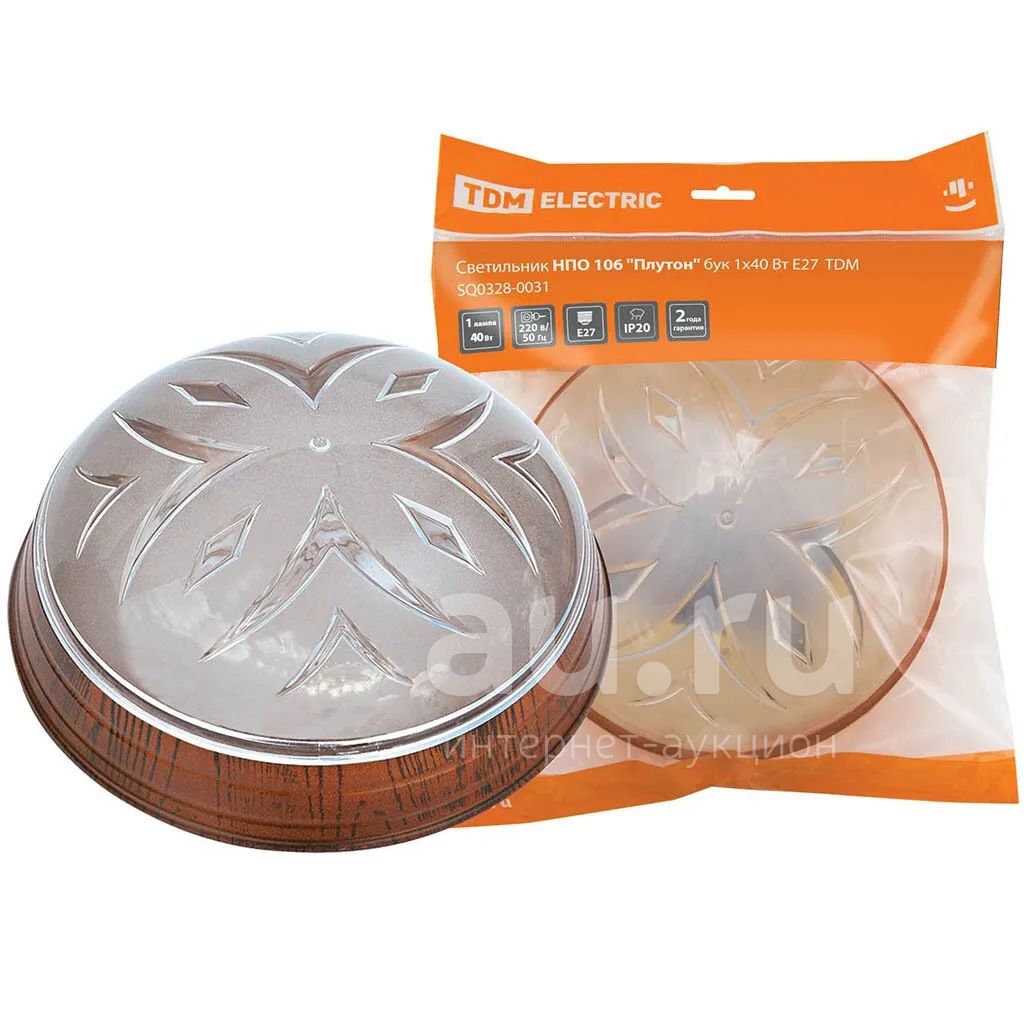 Светильник TDM Electric, НПО 106 Плутон, 40 Вт, E27, на 1 лампочку, IP20, 23.2х23.2х7.7 см, бук, SQ0328-0031