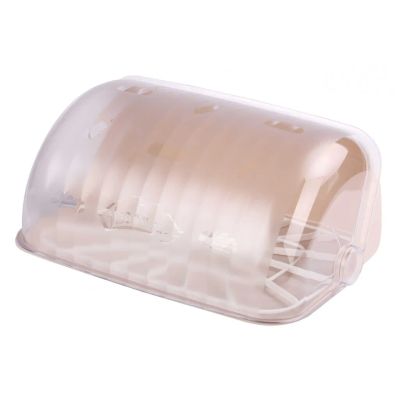 Хлебница «Плетёнка» позволяет сохранить свежесть и мягкость хлебобулочных изделий. Откидная крышка на защёлке удобна для частого открывания и закрывания изделия. Поэтому эту хлебницу можно использовать в местах общественного питания. Прозрачное окошко на крышке позволяет видеть содержимое хлебницы. Изделие изготовлено из качественного пластика, разрешённого для контакта с пищевыми продуктами.