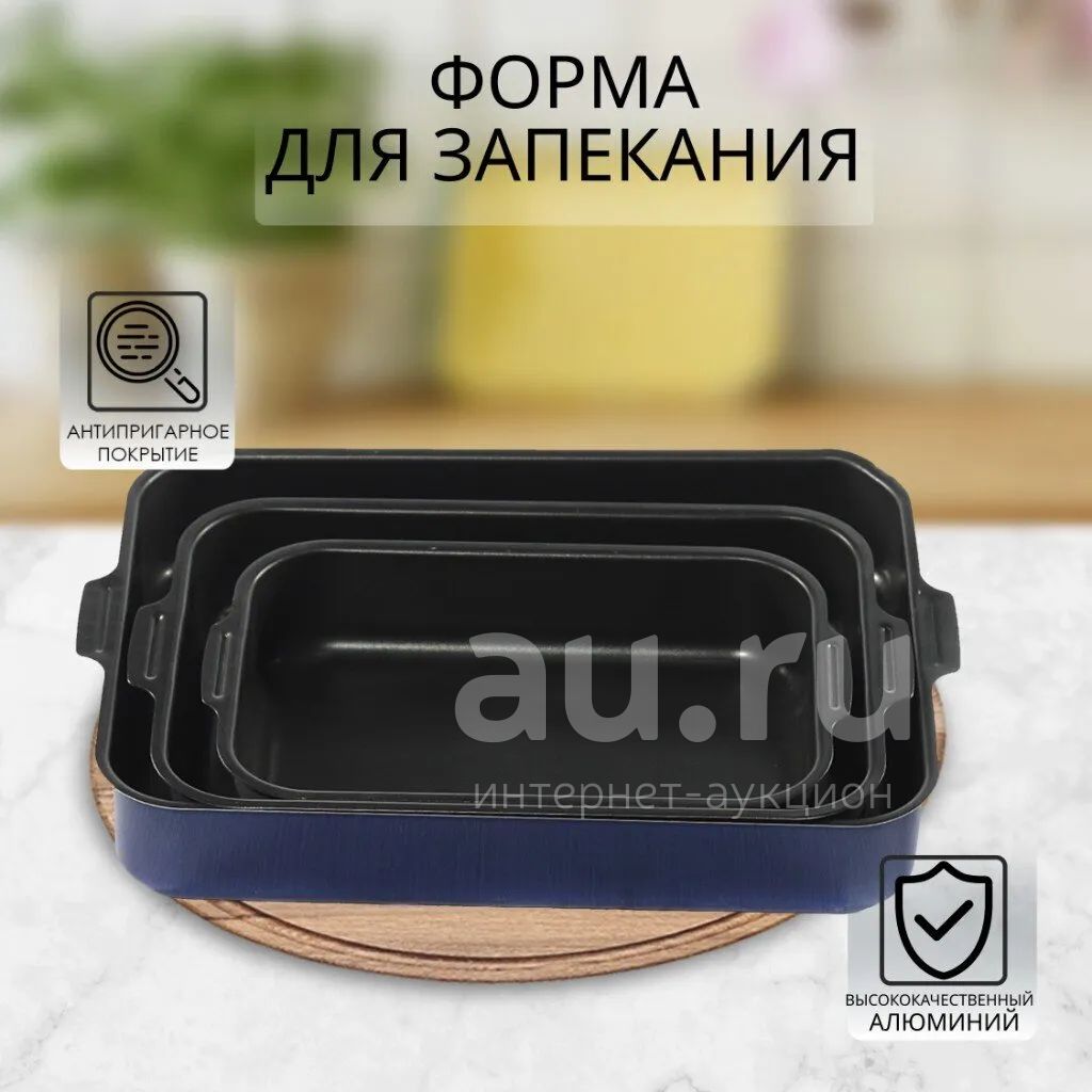Форма для запекания алюминий, 3 шт, 27х35х6 см, антипригарное покрытие, прямоугольная, Калитва, 63034