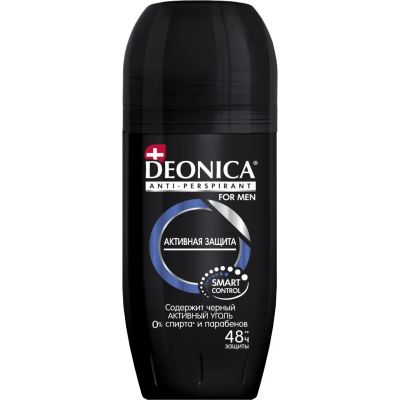 Уникальный мужской антиперспирант Deonica For men Активная защита благодаря специальной формуле с черным активным черным углем обеспечивает надежную защиту от пота и запаха на 48 часов, не оставляя следов и пятен на белой, черной и цветной одежде.