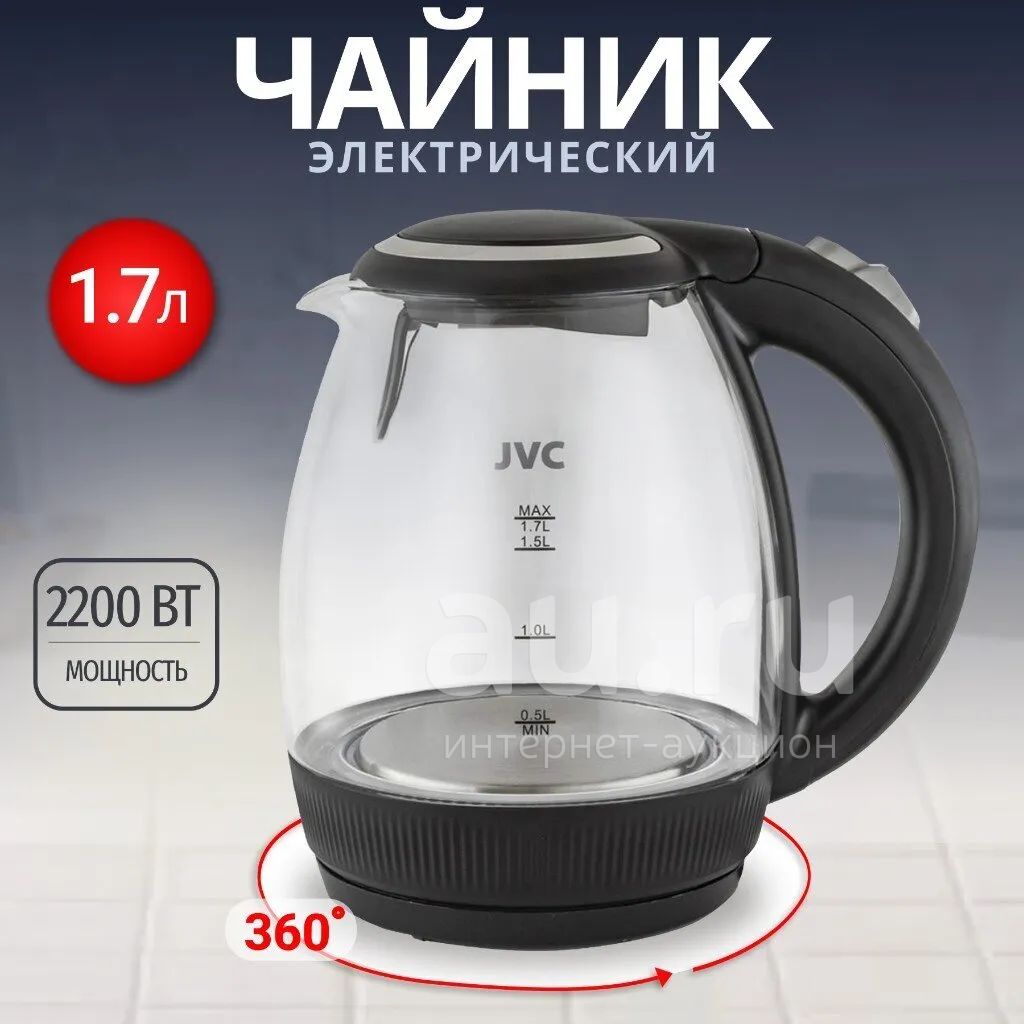 104руб.Чайник электрический JVC, JK-KE1516, черный, 1.7 л, 2200 Вт, скрытый ...