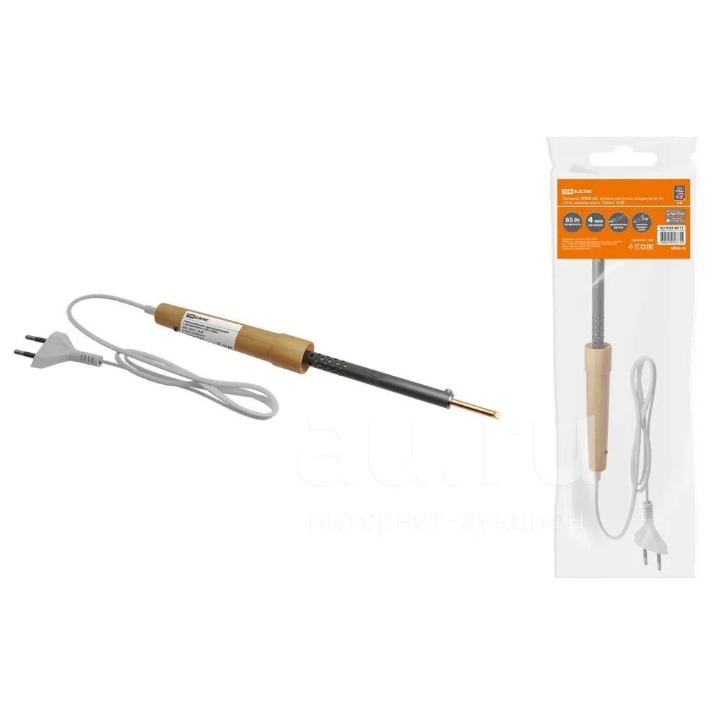 Паяльник сетевой, 65 Вт, 230 В, рукоятка дерево, сменное жало, TDM Electric, Рубин ЭПСН-65, SQ1025-0513