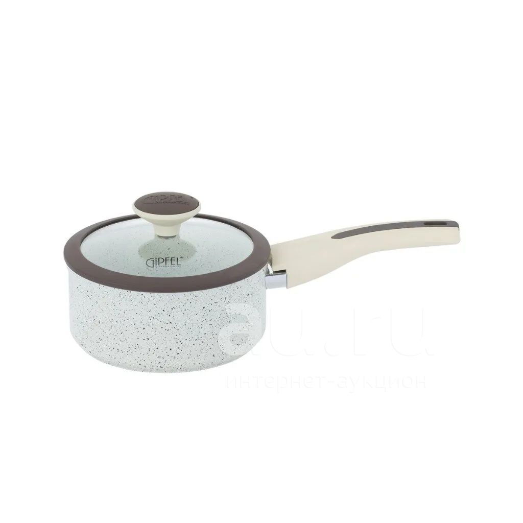 Ковш алюминий, антипригарное покрытие, 1.3 л, крышка стекло, бакелитовая ручка, индукция, Gipfel, Sonrizo Excilon Marble, 0431