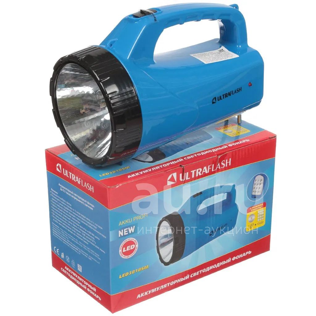Фонарь ручной, встроенный аккумулятор, Ultraflash, 3818SM, зарядка от сети 220 В, пластик, синий, 12889