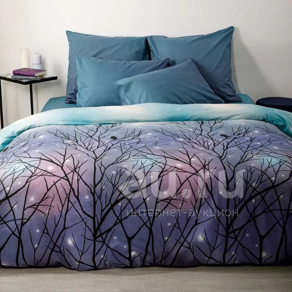 Постельное белье 1.5-спальное, простыня 145х215 см, 2 наволочки 70х70 см, пододеяльник 145х215 см, Ночь нежна, поплин, Черная птица