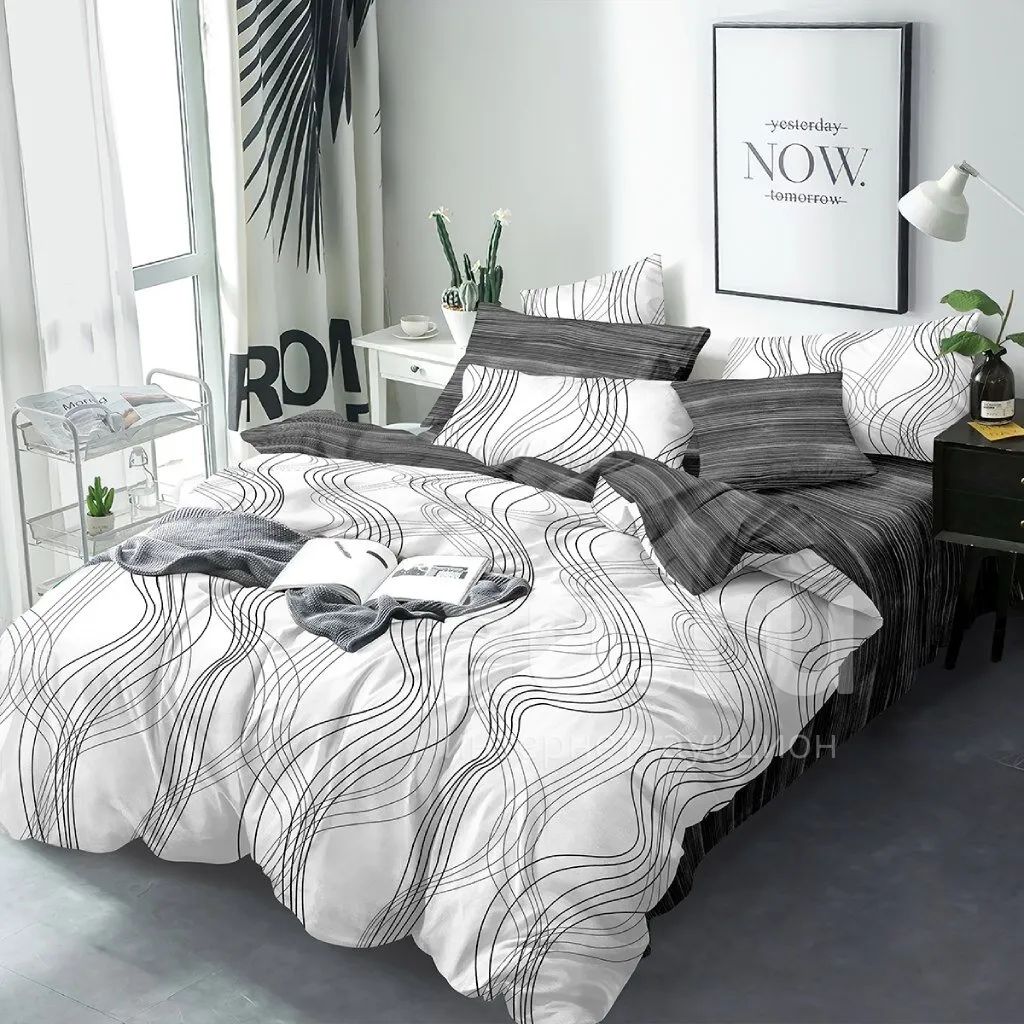 Постельное белье 2-спальное, простыня 215х220 см, 2 наволочки 50х70 см, пододеяльник 175х215 см, Bravo, поплин, Графит 4749-1+4749а-1