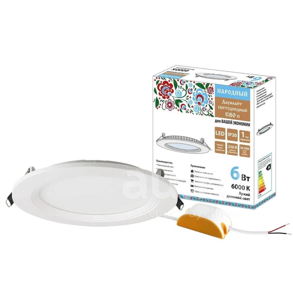 Светильник встраиваемый ультратонкий, Даунлайт Народный, 6 Вт, 6000 К, белый, TDM Electric, SQ0329-0526