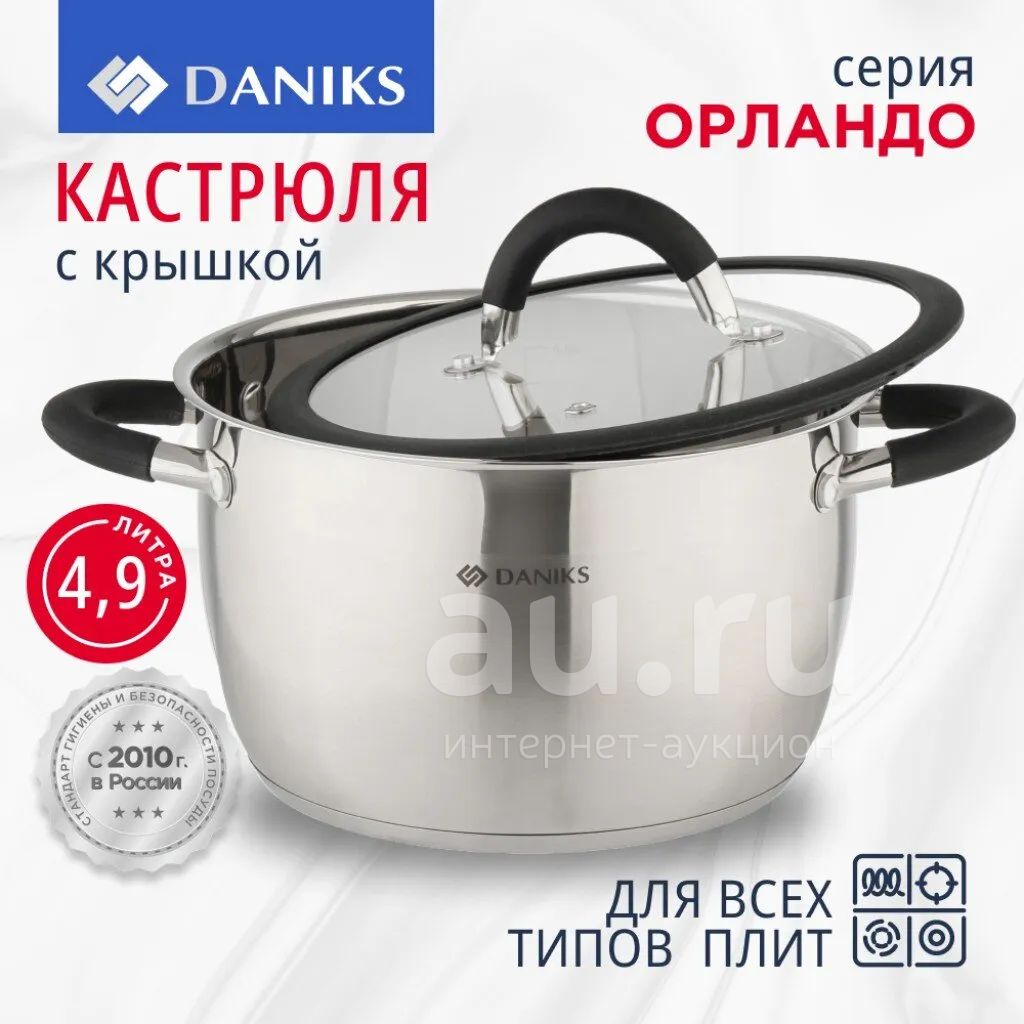 Кастрюля Daniks Орландо 4.9 л из нержавеющей стали с капсульным дном: универсальный выбор для индукции, газовых и электрических плит. Идеально для дома и дачи.