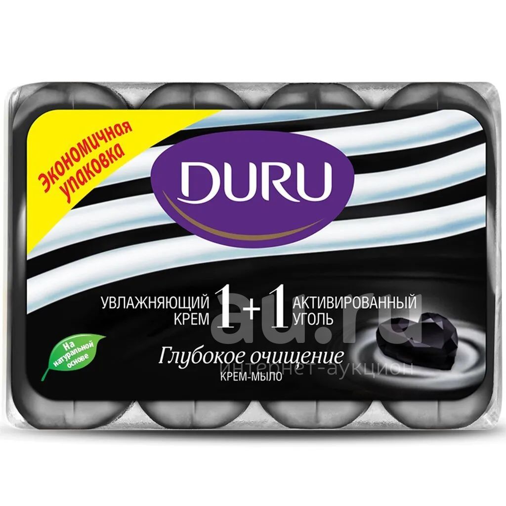 Крем-мыло Duru, 1+1 Глубокое очищение Увлажняющий крем и активированный уголь, 4 шт, 90 г