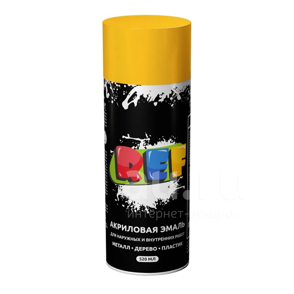 Эмаль аэрозольная, REF, универсальная, акриловая, глянцевая, желтая, 520 мл