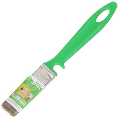 Кисть применяется для окрашивания поверхностей лакокрасочными изделиями на водной основе. Удобна для нанесения краски на узкие поверхности, такие как окна, подоконники и т.д. Состав щетины - смесь натурального и искусственного волокна, устойчивого к трению и механическим повреждениям. Рабочая часть надежно закреплена бандажом из стали. В пластиковой рукоятке имеется отверстие для подвешивания и специальный крючок для крепления на банку.