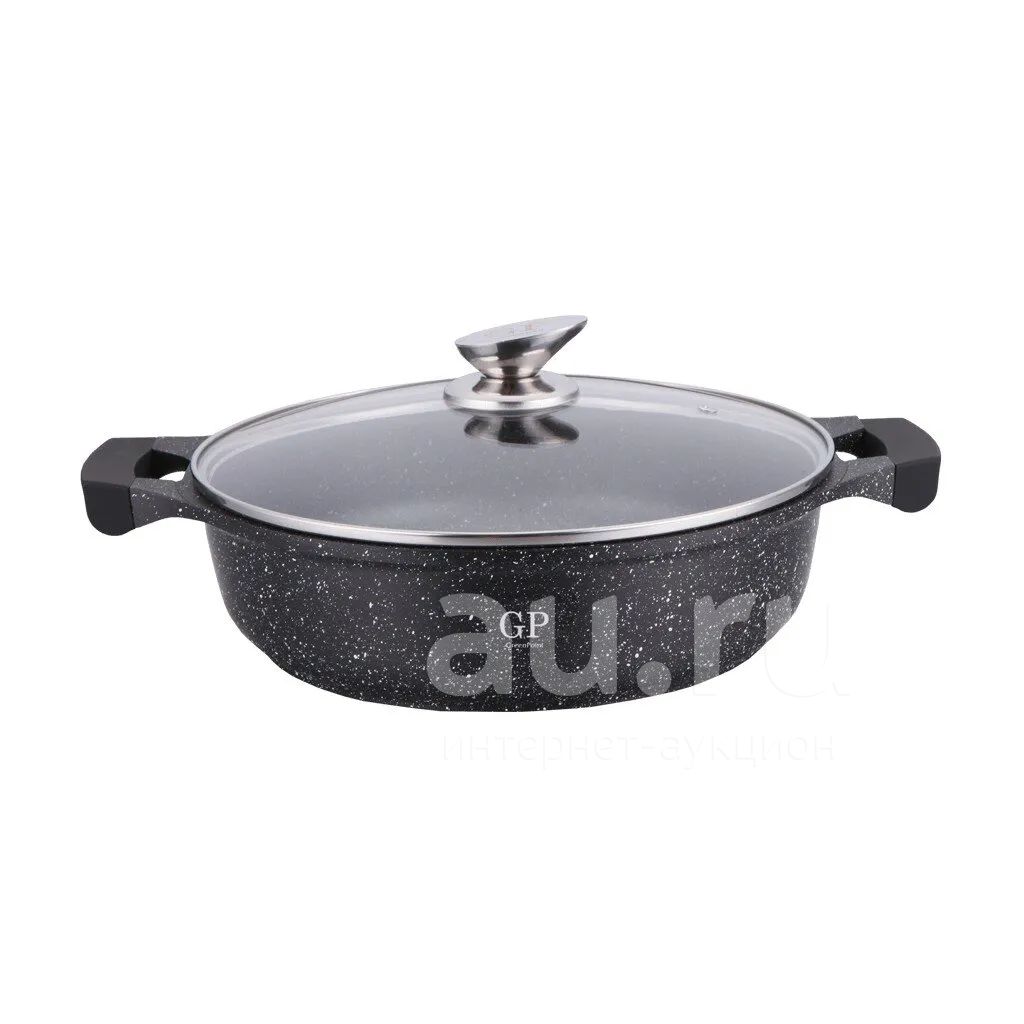 Сотейник алюминий, 28 см, 4.1 л, антипригарное покрытие, GreenPoint, Мрамор, 2820-GP, с крышкой, индукция