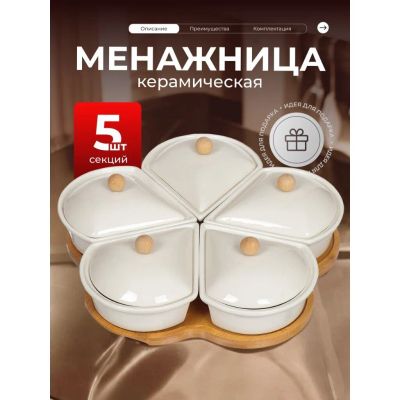 Менажница бамбук, 29.5 см, 5 секций, Цветок, Y6-2570