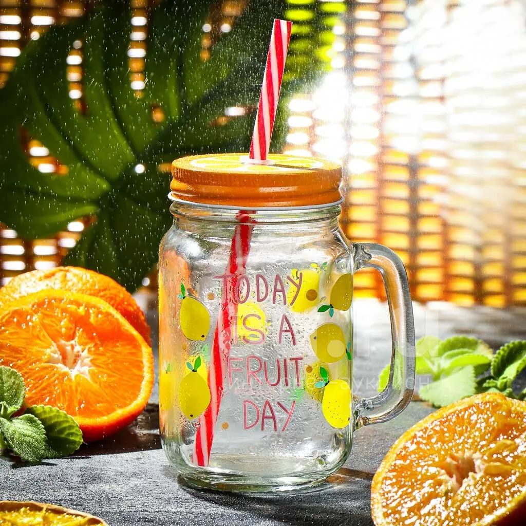 399руб.Банка для напитков стекло, 450 мл, с крышкой, с трубочкой, Y4-2809