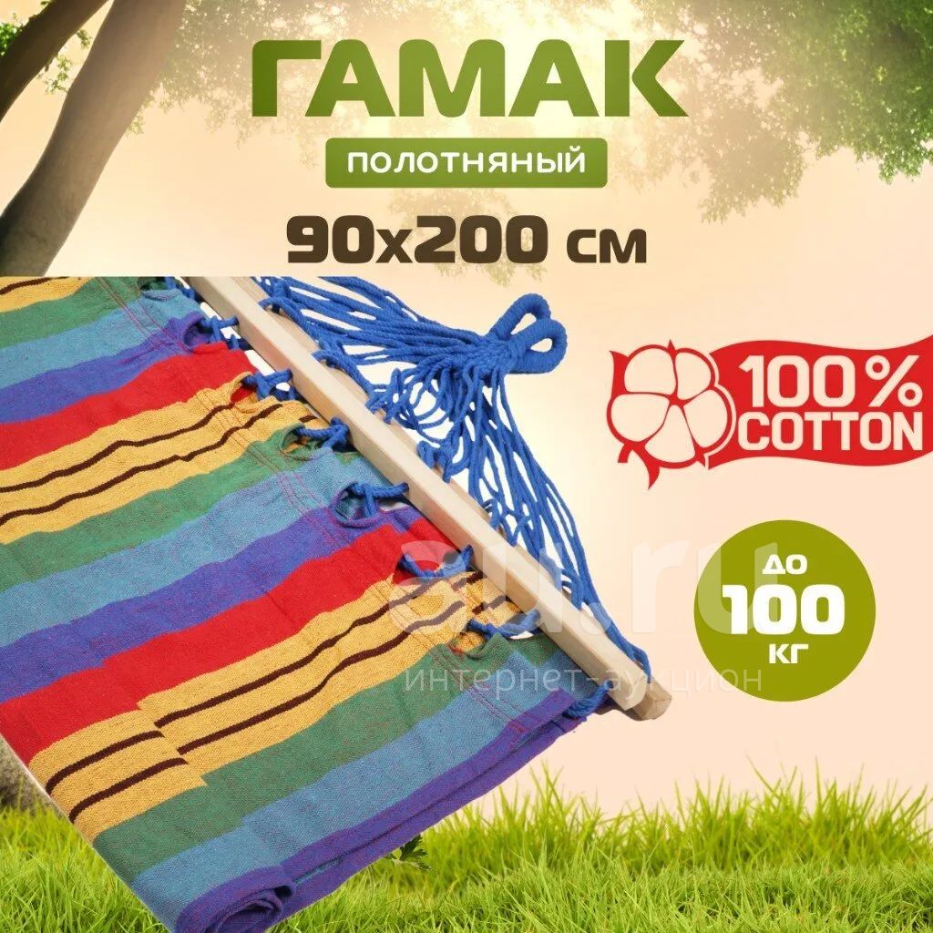 Гамак полотняный, 90х200 см, хлопок, общая длина 280 см, 100 кг, Полоска, LG14
