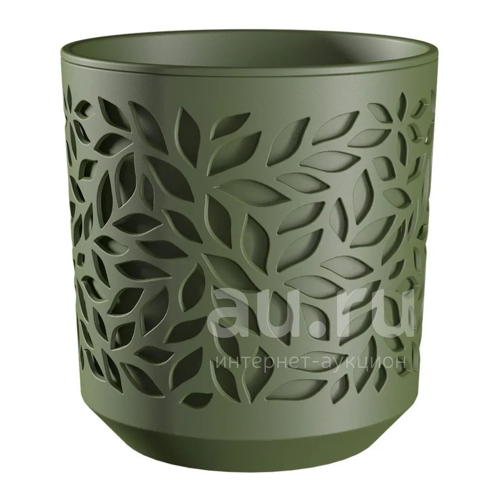 Кашпо пластик, 1.25 л, 13х13.5 см, оливка/оливка, ВМС, Leaves, КШ-9824