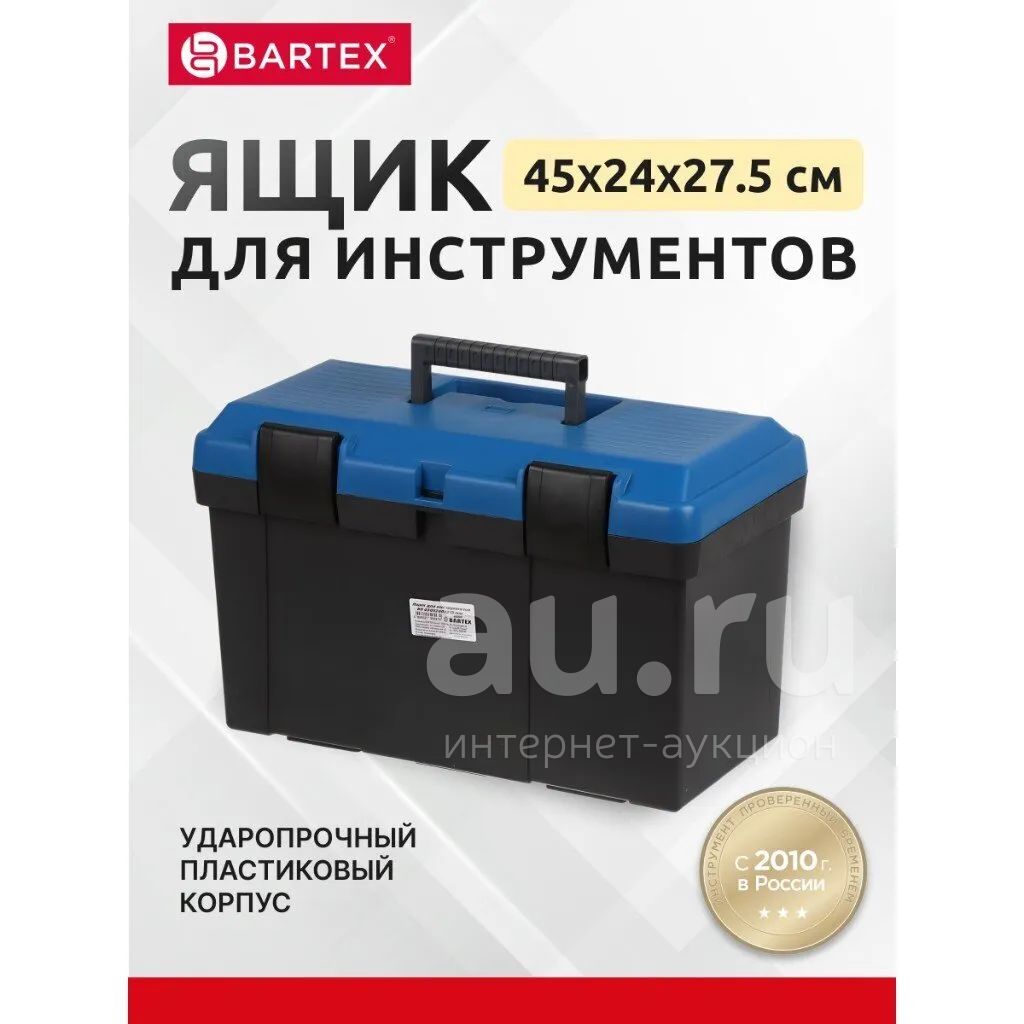 Ящик Bartex — это незаменимый помощник для любого мастера. Он выполнен из прочного материала, который обеспечивает надёжную защиту содержимого от повреждений и влаги. Внутри ящика есть несколько отделений для удобного размещения всего необходимого.