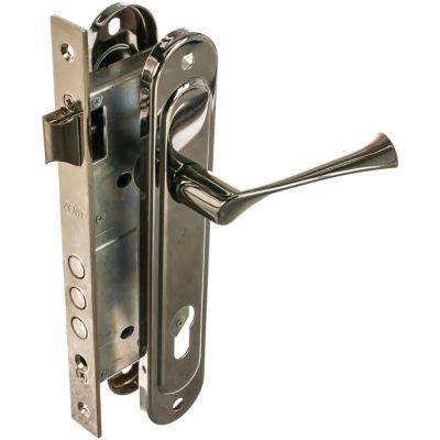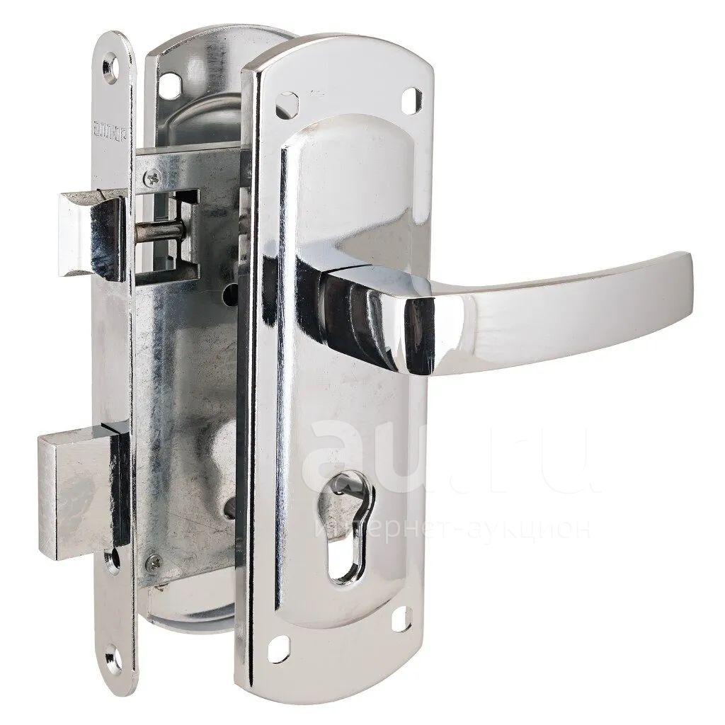Замок врезной Аллюр, ЗВ4-1/58A CP, 7161, ручка в комплекте, без механизма, автомат для калиток, хром
