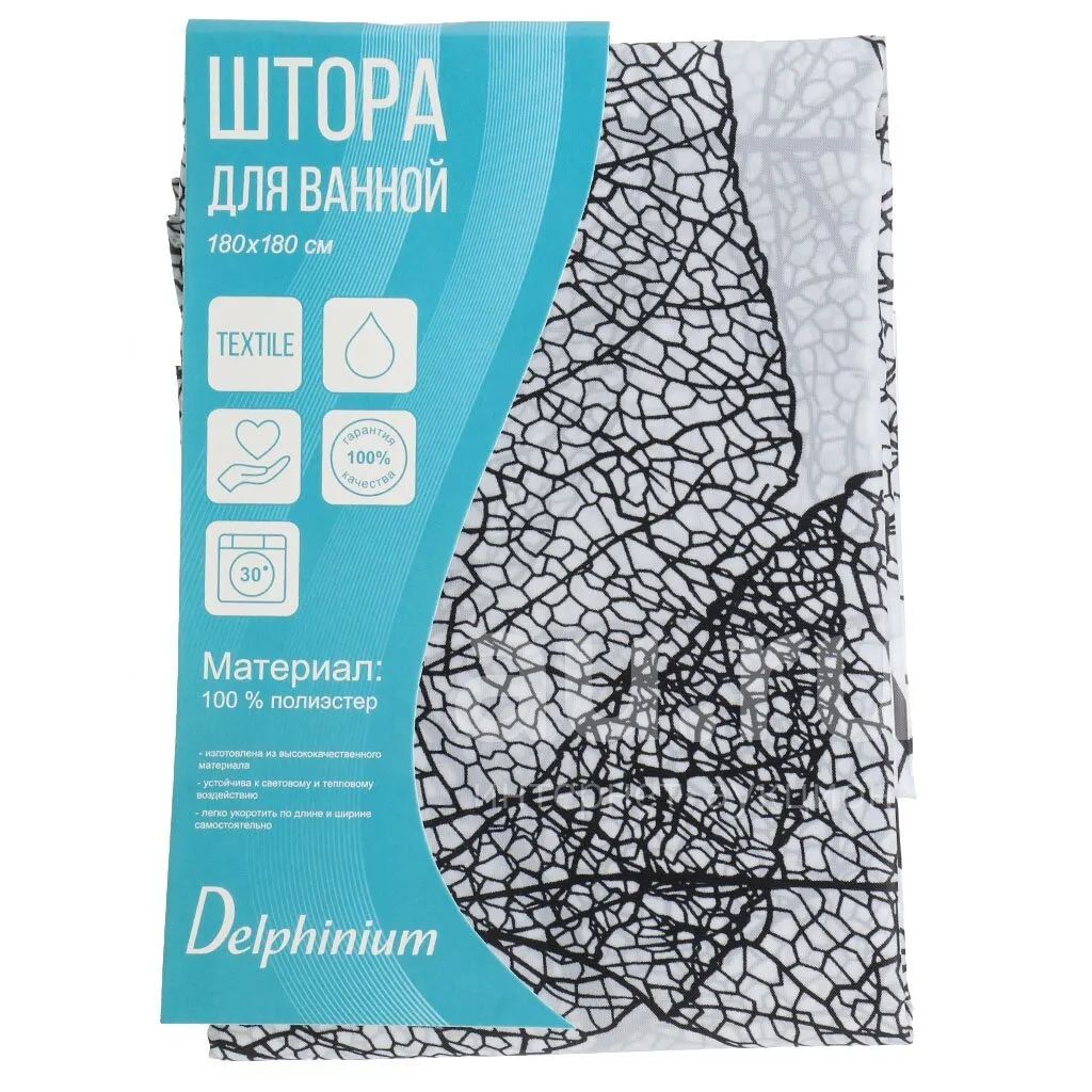 Штора для ванн 180х180 см, полиэстер, Delphinium, Листья, мультиколор, 104119