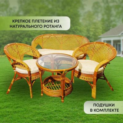 Мебель садовая Тринити, стол, 45х45х42 см, 2 кресла, подушка, 65х67х84 см, C010072