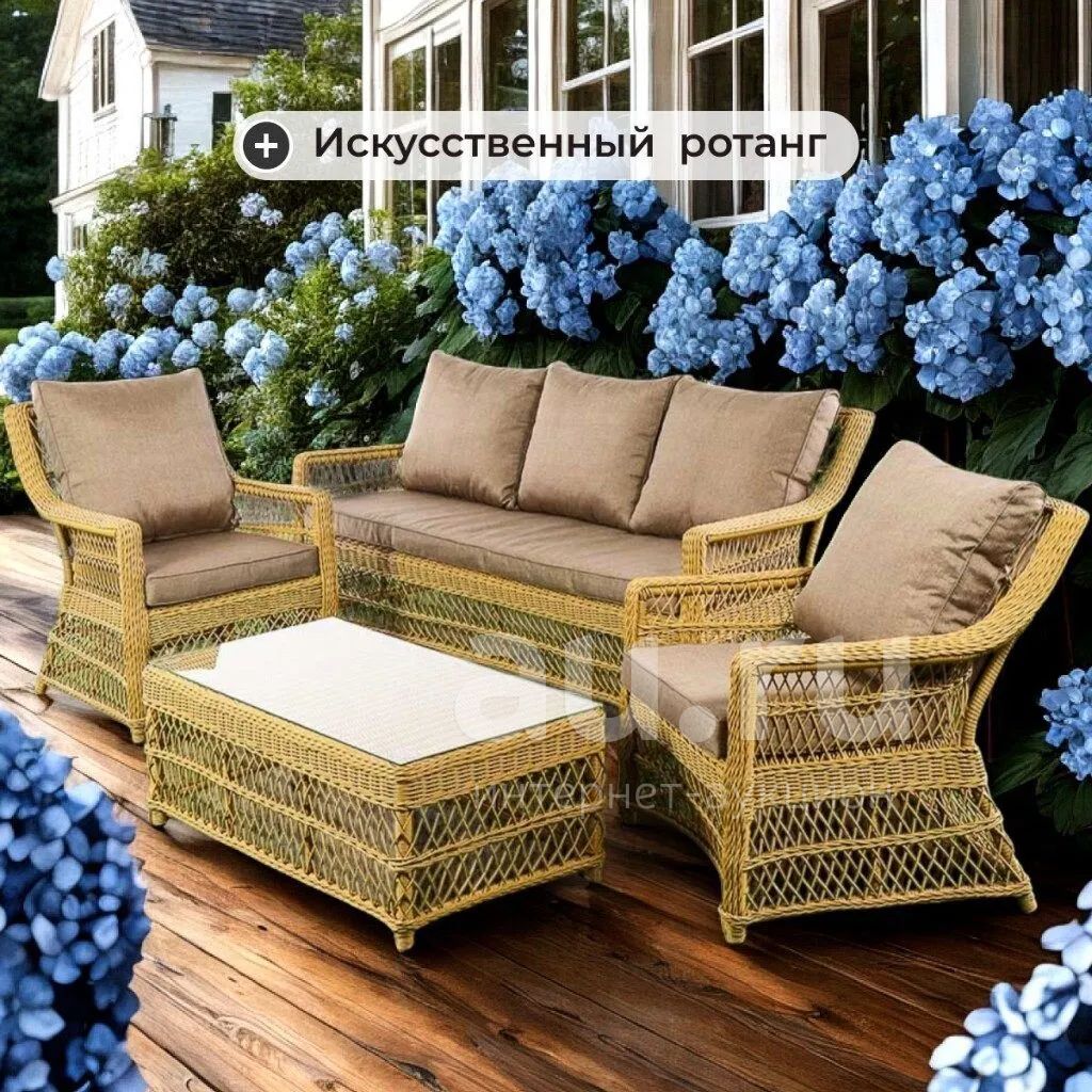 Мебель садовая соломенная, стол, 110х57х46 см, 2 кресла, 1 диван, подушка, 150 кг, 190х85х86 см, SYH1909W