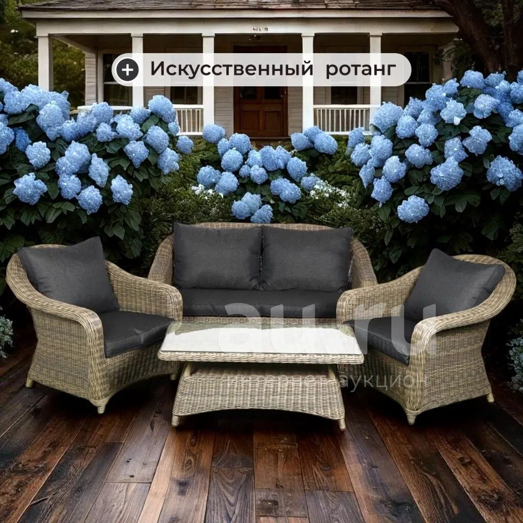 Мебель садовая серая, стол, 110х60х40 см, 2 кресла, 1 диван, подушка, 110 кг, 154 см, SYH283W