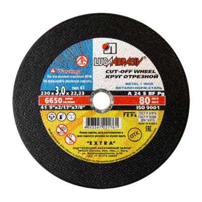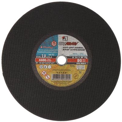 Круг отрезной по металлу, LugaAbrasiv, Extra, BF, диаметр 355х3 мм, посадочный диаметр 25.4 мм, зернистость A24, S 80 м/с, ручная подача