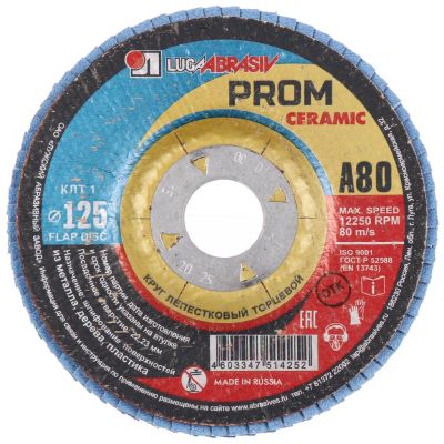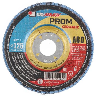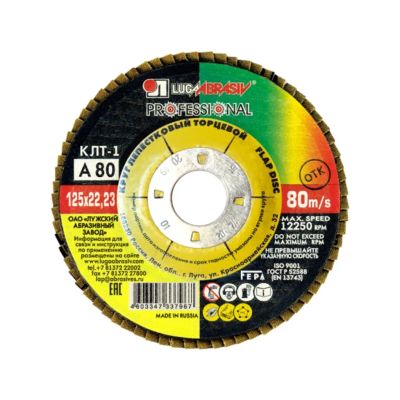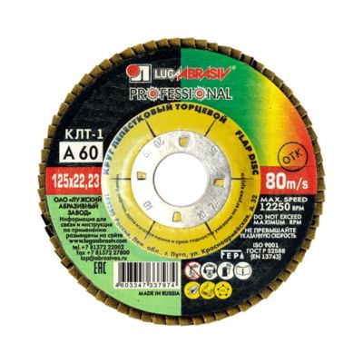 Круг лепестковый торцевой КЛТ1 для УШМ, LugaAbrasiv, диаметр 125 мм, посадочный диаметр 22 мм, зернистость ZK120, шлифовальный